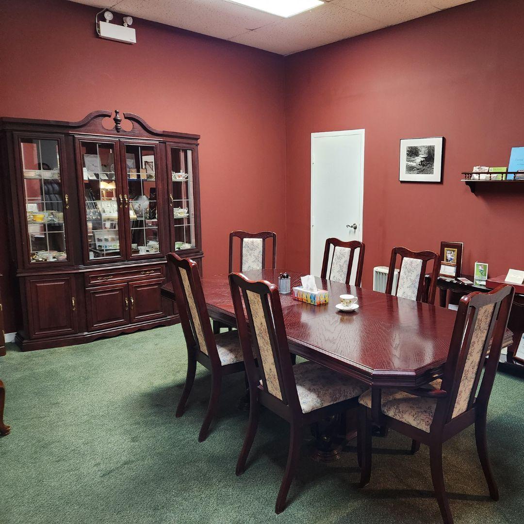 Our two arrangement offices provide private, comfortable spaces where families can meet with our team to discuss plans with ease and confidence. Each office is designed to feel welcoming and respectful, offering a quiet setting where questions can be answered and wishes carefully noted. Whether making immediate arrangements or planning ahead, these offices ensure conversations take place in an environment of compassion, professionalism, and support.