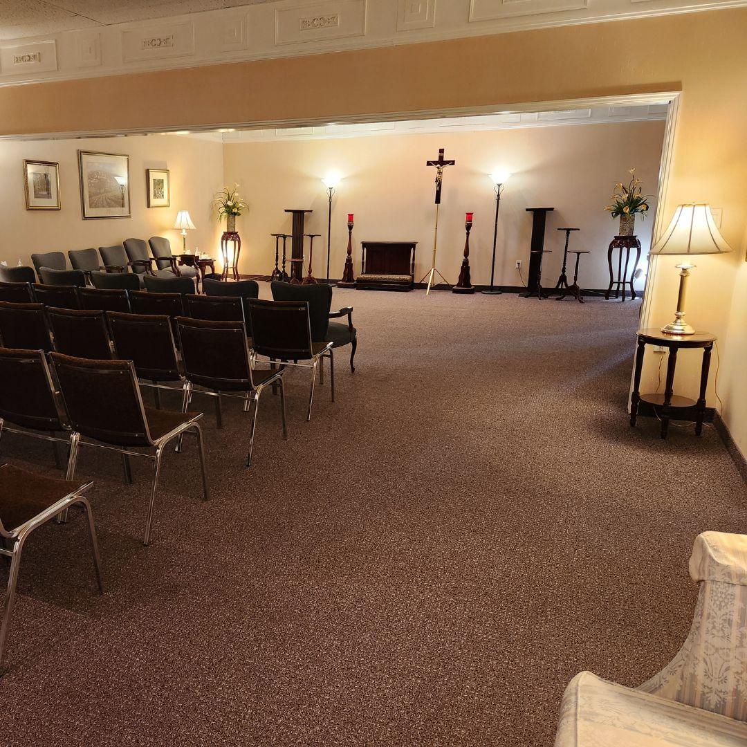 The chapel at Bocchinfuso Funeral Home provides a serene and dignified setting for honouring life and saying farewell. With comfortable seating and an atmosphere of quiet reverence, the chapel creates a space where families and friends can gather to reflect, remember, and celebrate the lives of their loved ones. Designed to accommodate both intimate gatherings and larger services, it offers a setting that is both respectful and deeply personal.